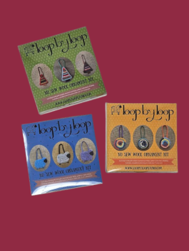 Loop by Loop Studio donated three No-Sew Boxed Rug Hooking Kits to the lucky winner of the Rug Hooker’s Dream Basket. These kits make one round ornament, one tree shaped ornament, and one proddy flower pin.