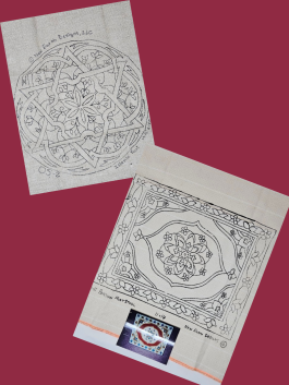 From New Earth Designs, LLC, is ISLAMIC KNOT, a 15″ round pattern, and PERSIAN FOOTSTOOL, an 11″ x 14″ pattern, both on linen. A $45 value.