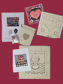 Discover two charming patterns (the Funky Heart and Macaroon on a Pedestle) that can be used for rug hooking or punch needle rug hooking. Both kit patterns come ready to hook! Also included are two pendant kits to show off unique quillies. Instructions on how to make your own quillies out of wool is included with the kits, in addition to the materials required to make your own pendants.