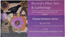 Revival’s Fiber Arts & Gatherings was created due to my growing fascination and Love of Fiber Arts in all its forms. Exploration of Traditional Rug Hooking – it’s rich history and breadth of expression. Moving forward to Quilting. Embracing Weaving. Appreciation and love of all the women and men who practice these skills and give their knowledge freely. All these arts have been practiced for hundreds of years. Handed down from generation to generation. Cultivation of younger generations appreciation and keeping these arts alive is a labor of Love. It took over three years to find the perfect place. Revival’s Fiber Arts & Gatherings was finally established in Greentown IN. Greentown is, most notably, known as the home of GreenTown Glass which can be seen at the local museum dedicated to it and its history. It is also the location of the Howard County Fair which celebrates Howard Counties rich agricultural and community gifts.