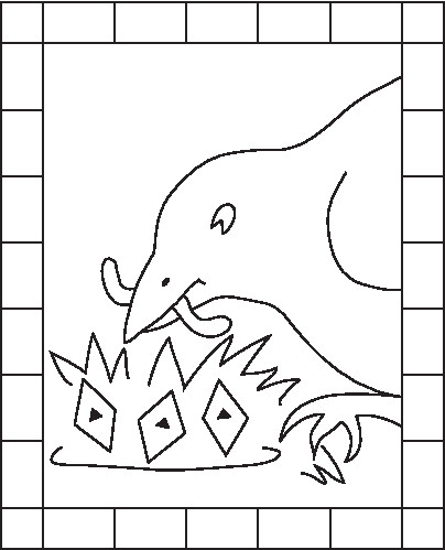 The Early Bird Gets the Worm by Karen Larson © 2011. To use stretcher bars of 16″ x 20″, enlarge this pattern 256%. Or enlarge to fit stretcher bars of other sizes as you wish. Pattern is for one-time use only.