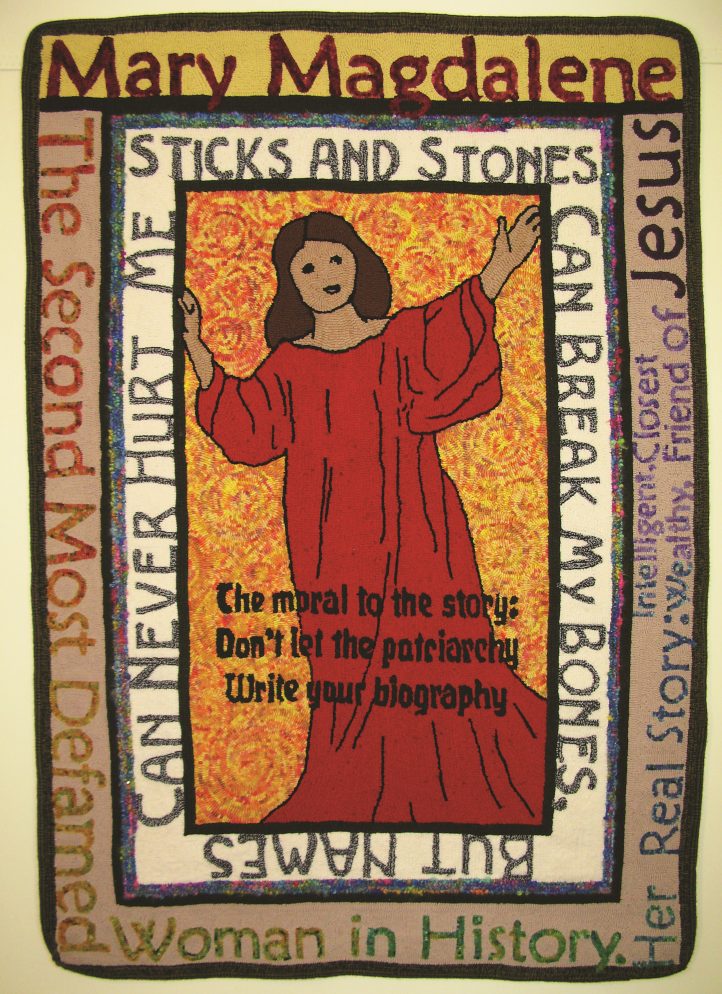 Mary Magdalene, 60″ x 42″, #4- and 6-cut wool on linen. Designed and hooked by Emily Robertson, Cambridge, Massachusetts, 2007