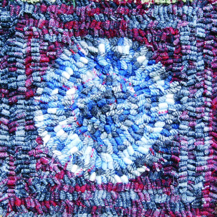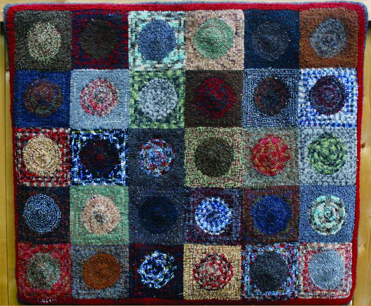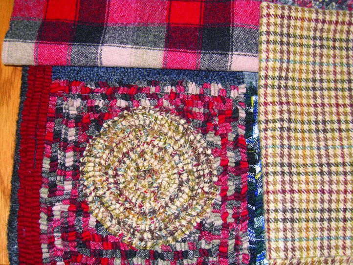 By using each of the plaids twice—once in the circle and once in the square—Laurie was able to see how each would hook up. The end result was not only a fun rug, but also a guide for how to use her plaid wool in future rugs.