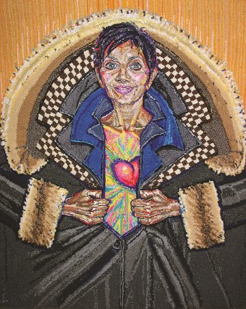. . . has helped me come to terms with the modern world. In my work, I bring to the forefront that which is often shoved under the rug: man’s inhumanity toward his fellow man/woman/child, both at home and in the world at large. I take rugs off the floor, reinvent rags, and create psychologically charged portraits from discarded clothing. The rug and rag are elevated, celebrated, getting a second chance at life.