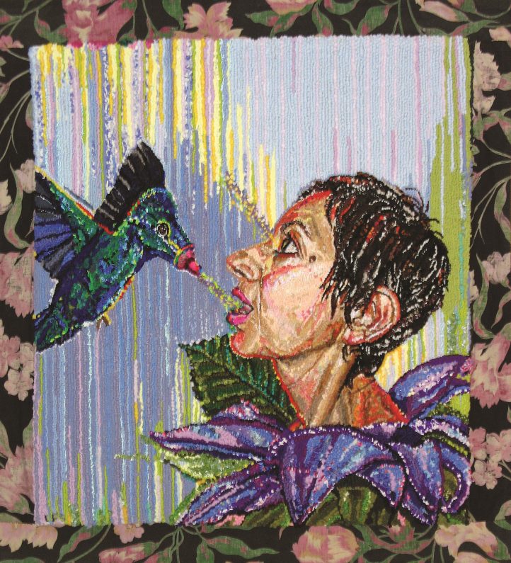 . . . has made me happier than I ever was. My childhood dream has come true. I am doing what I always wanted to do: making art every day and exhibiting regularly in fine museums and galleries. My old wardrobe fades away as it transmutes into the hooked “paintings” in which I recognize and appreciate my relationship to the universe. Now I am at peace, with time to admire the beauty of nature, flowers, trees, birds, and every living thing.