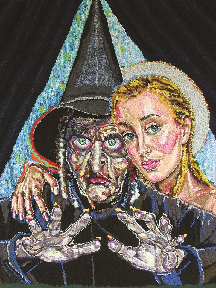 . . . has helped me come to terms with the modern world. In my work, I bring to the forefront that which is often shoved under the rug: man’s inhumanity toward his fellow man/woman/child, both at home and in the world at large. I take rugs off the floor, reinvent rags, and create psychologically charged portraits from discarded clothing. The rug and rag are elevated, celebrated, getting a second chance at life.